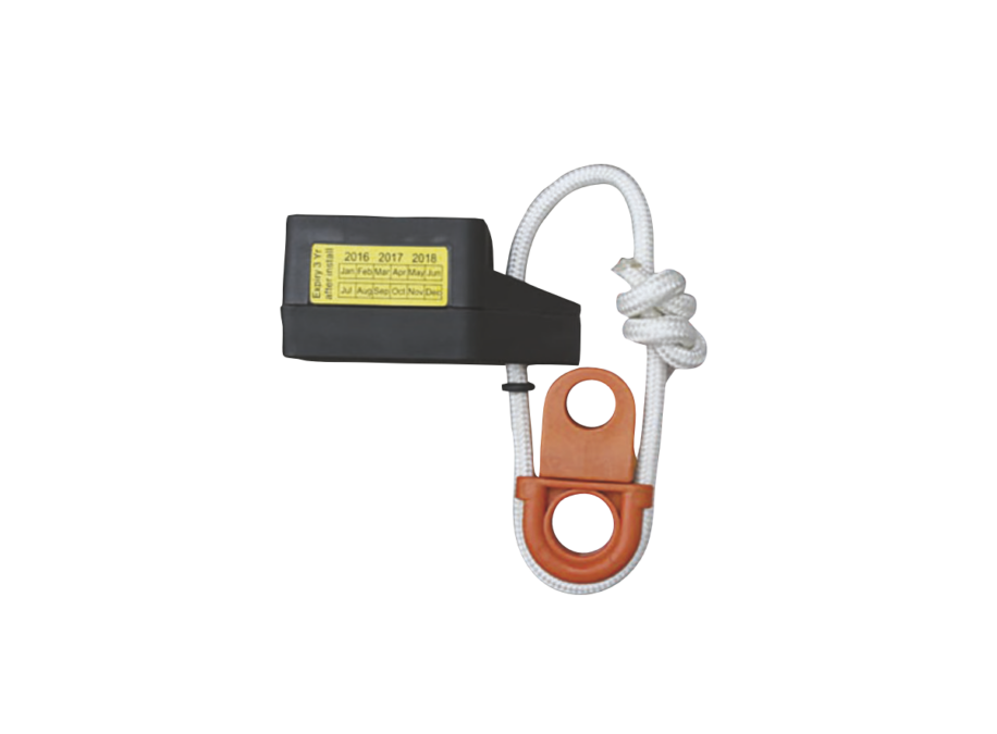 The pressure of the water on the casing causes a knife to cut through a rope and thereby releasing the life raft. This same principle applies on the HRU for EPIRB’s, whereby the bracket which holds the EPIRB is released. The EPIRB model is delivered with the bolt and nut to connect the EPIRB to your vessel.