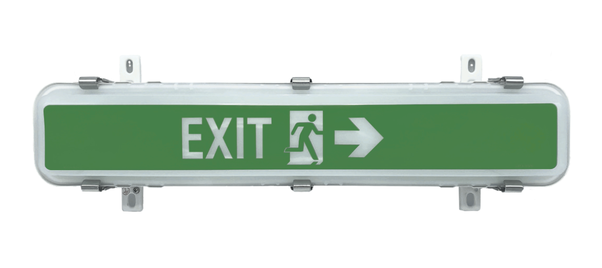 Räjähdyssuojattu LED-poistumistiekyltti on suunniteltu toimimaan ankarissa ympäristöissä. Rakennettu korroosiota kestävästä materiaalista, LED-poistumistiekylttiä voidaan käyttää sisä- ja ulkotiloissa, jotka ovat alttiita suihke vedelle tai kosteudelle. Tämä räjähdyssuojattu LED-poistumistiekyltti on suunniteltu toimimaan alueilla, joissa on palovaarallisia kaasuja tai höyryjä ja / tai palavaa pölyä. Tämän tyyppisissä ympäristöissä normaali valaisin on riskialtis räjähdykselle. Tämän seurauksena DAESUVE GH01 on ihanteellinen poistumistiekyltti esimerkiksi LNG-moottorilla toimivien alusten konehuoneessa.